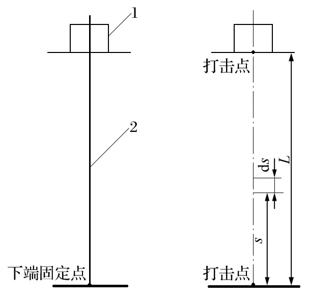 在井口附近位置,對罐道繩某一點施加一垂直沖擊力,使罐道繩產生橫向振動。振動波在鋼絲繩上的傳遞速度與鋼絲繩所受張力的關系如下:
