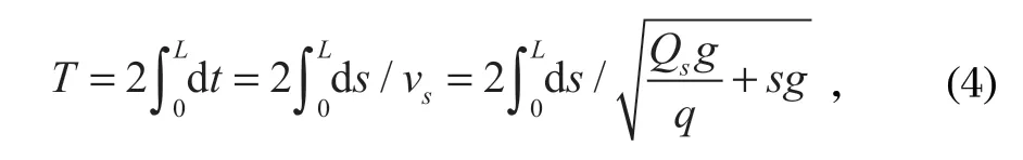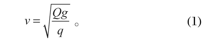 式中:v 為振動波在鋼絲繩上的傳播速度,m/s;Q為鋼絲繩所受張力,N;g 為重力加速度,m/s2;q 為罐道繩每米重力,N/m。